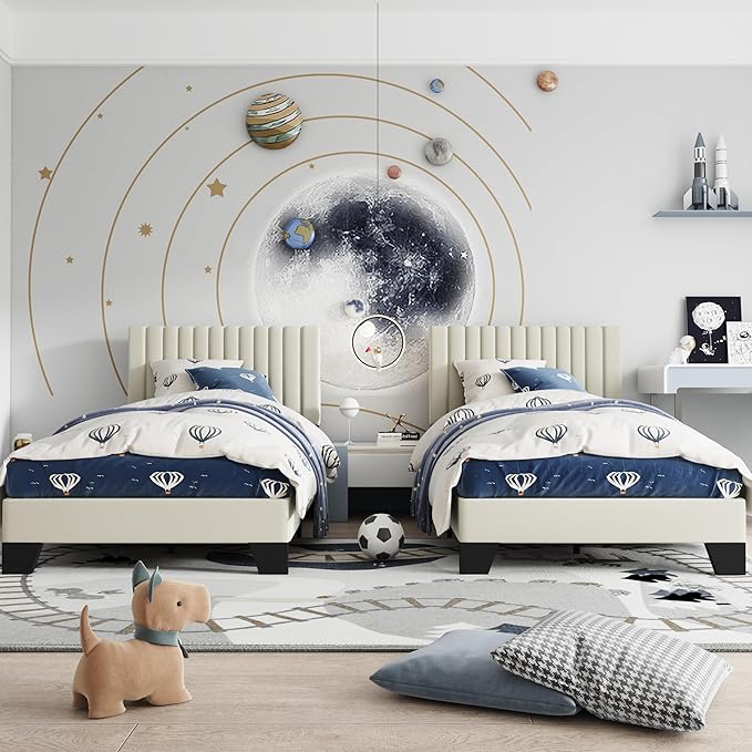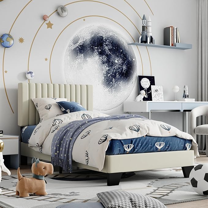 - ELEGANT DESIGN: The classic vertical channel tufted headboard adds a modern touch of elegance and sophistication to your bedroom, and the twin bed frame is a great addition to your bedroom furniture.