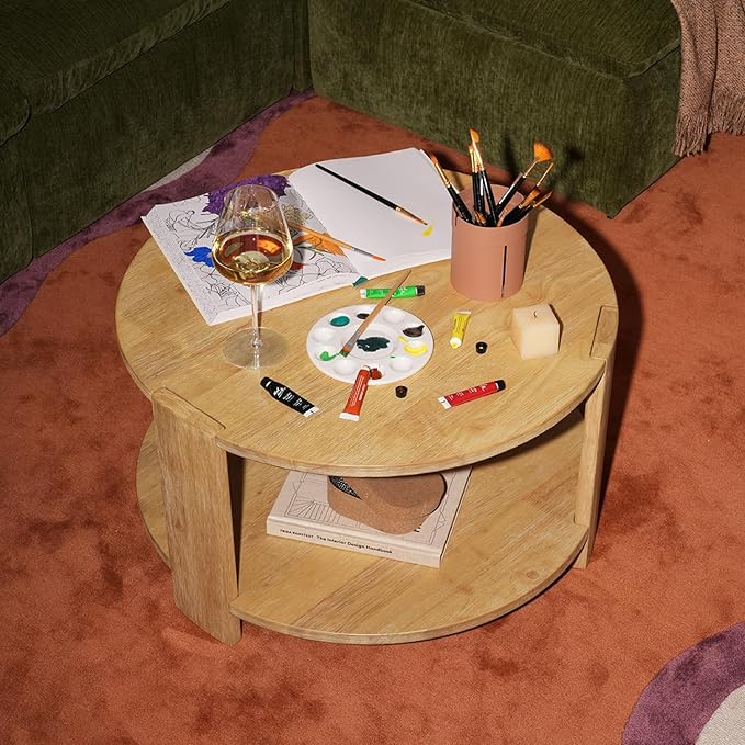 - Two-Tier Design: Round storage coffee table that offers double-duty with a bottom shelf to store essentials and a top surface to display your decorative items, blending functionality and style
