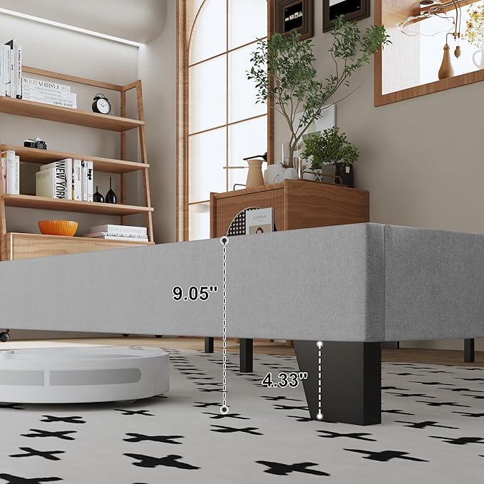 - STRONG CONSTRUCTION: Upholstered platform bed frame is made of steel frame and thick wood slats with heavy-duty support legs that are sturdy and can support up to 1,000 pounds.