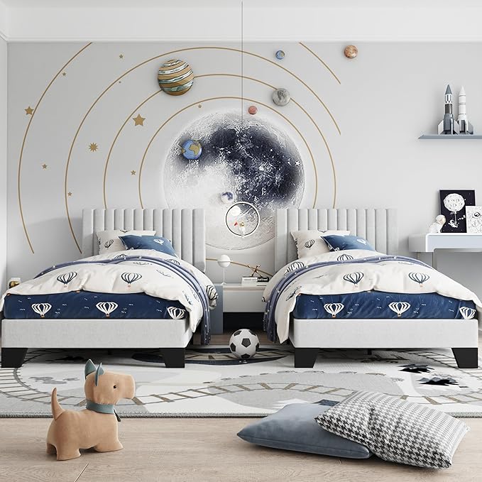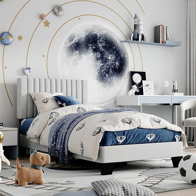 - ELEGANT DESIGN:The classic vertical channel headboard adds a modern touch of elegance and sophistication to your bedroom, and the twin bed frame is a great addition to your bedroom furniture.