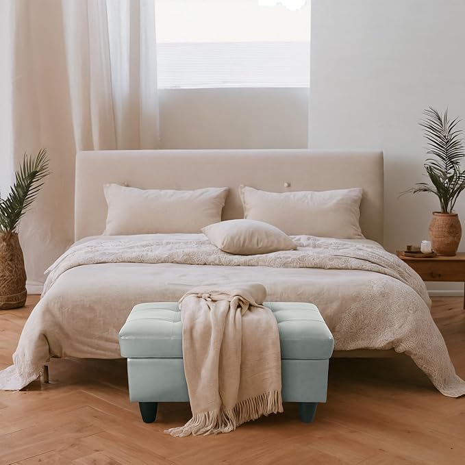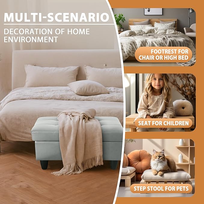 - OTTOMAN BENCH: This versatile storage ottoman doubles as a comfortable bench, perfect for entryways, living rooms, or bedrooms. Designed to blend style with functionality, it provides both extra seating and hidden storage, making it a practical and stylish solution for any space.