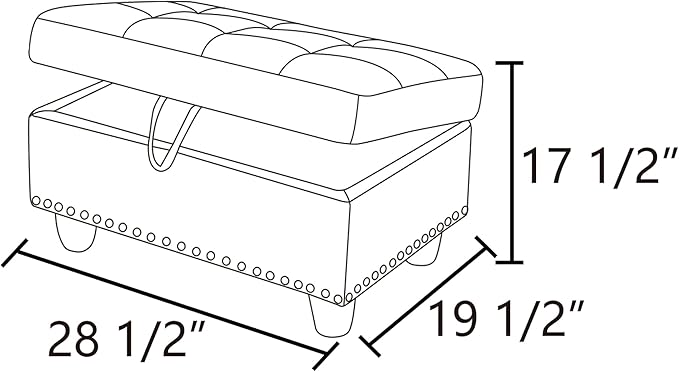 - DIMENSIONS: Measuring 28.5" L x 19" W x 17.5" H, this storage ottoman is perfectly sized to fit effortlessly into your space. With a weight capacity of up to 300 lbs, it offers both style and durability, serving as a sturdy seating option or reliable storage solution for your home.