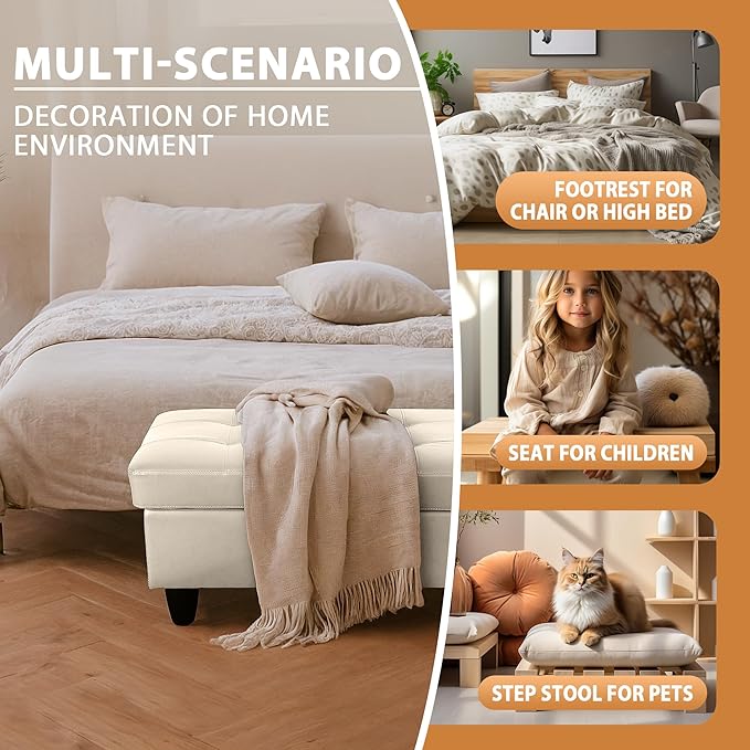 - OTTOMAN BENCH: This versatile storage ottoman doubles as a comfortable bench, perfect for entryways, living rooms, or bedrooms. Designed to blend style with functionality, it provides both extra seating and hidden storage, making it a practical and stylish solution for any space.