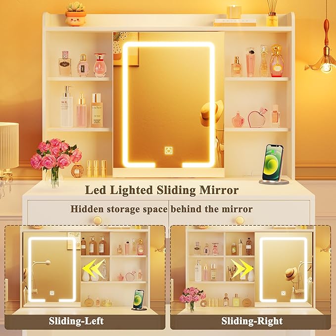 - Perfect Gift-Ready Vanity: This modern vanity with lights combines beauty and functionality. White vanity chic finish adds a touch of charm to your bedroom or dressing room. Easy to assemble, this small vanity desk makes a perfect gift for family and friends for birthdays, holidays, or special occasions