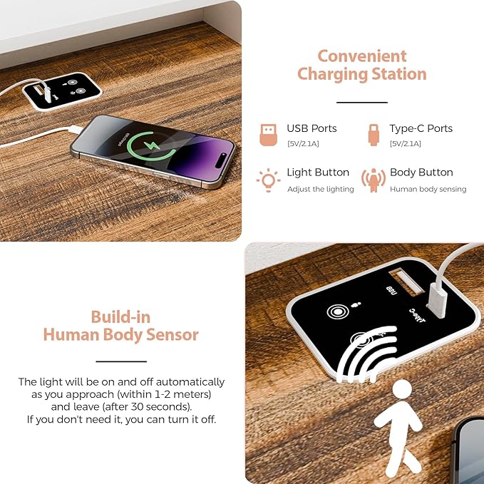 - Integrated Charging Station: This makeup vanity desk features a built-in charging station equipped with both USB and Type-C ports, allowing you to conveniently charge your phone, tablet, headphones, and other electronic devices.