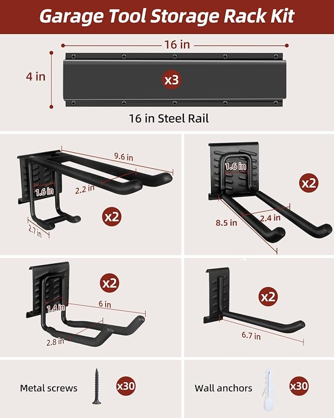 - Easy Installation: This garage wall organizer with 16-inch screw spacing, it installs firmly into wall studs. Comes with all necessary hardware for quick and easy wall mounting. Great organizer for garden and lawn tools