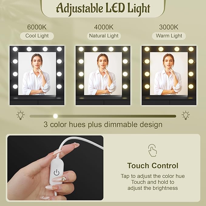 - 🌈[Stylish and Efficient]Choosing this beauty table means embracing a beauty space that combines neatness, style and efficiency. Let the daily grooming be turned into a ritual of pampering yourself and awakening a new self.