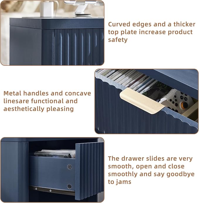 - [LEYAOYAO Versatile Farmhouse Nightstand] Our fluted bedside table boasts a minimalist curve profile and a drawer with a unique waveform panel, which is a perfect blend of modern aesthetics and functional design. The smooth curved edges make your bedroom exude elegance! This night stand can be used not only as a bed side table but also as a living room end table. Add a strong rustic colour to your bedroom and living room.