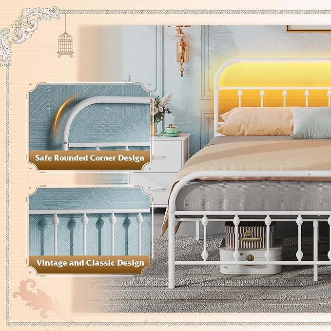 - 【🏠High Headboard】Compared with other metal beds, this queen bedframe has a higher headboard,designed taller than most standard metal bed frame, it offers exceptional back support for better protecting your head and providing you a comfortable sitting palce.