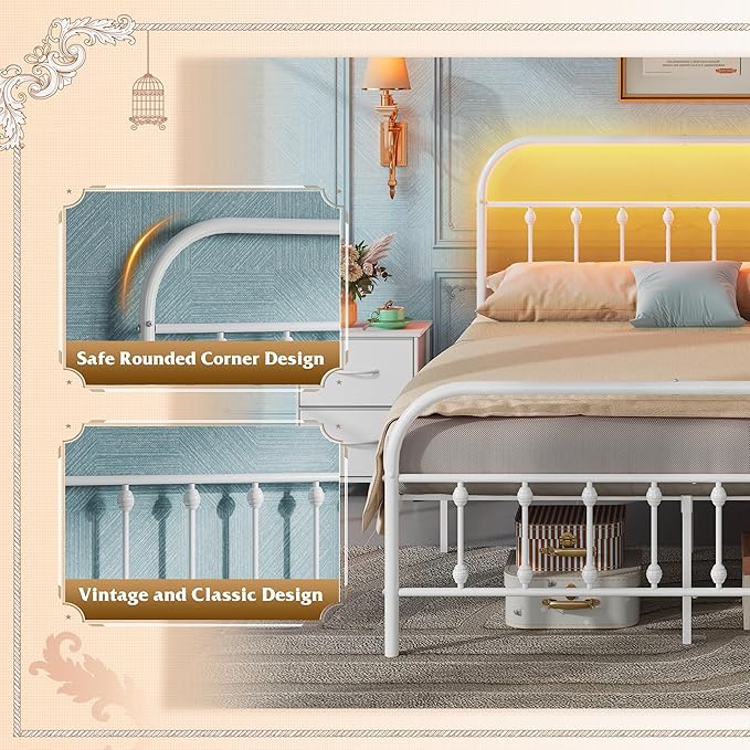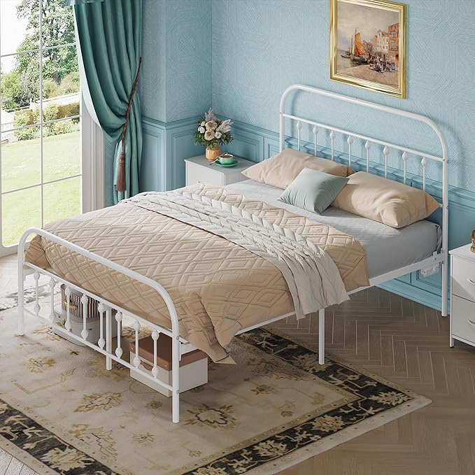 - 【🏠High Headboard】Compared with other metal beds, this full size bed frame with headboard has a higher headboard,designed taller than most standard metal bed frame, it offers exceptional back support for better protecting your head and providing you a comfortable sitting palce.