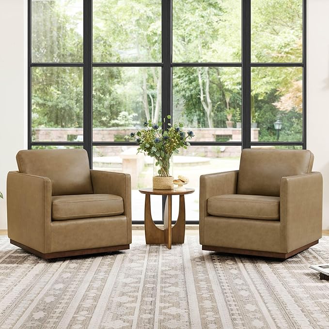 CHITA Genuine Leather Swivel Accent Chair, FSC Certified Mid Century Modern Arm Chair for Living Room and Bedroom, Fully Assembled, Mocha