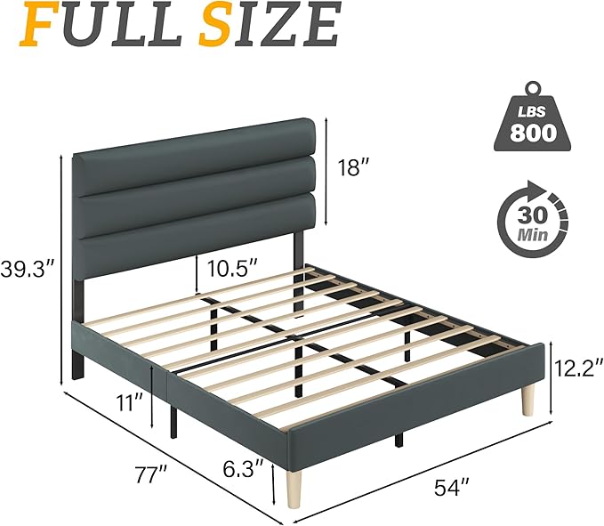 - 【Full Bed Frame with Noise Free & No Box Spring Needed】 The slatted portion of this full bed frame has a Velcro design that you can easily attach or detach. The entire middle of the full size bed frame is constructed with a metal support system, which greatly enhances its stability. At the same time, the metal support beam in the middle of this full size bed frame with headboard is equipped with EVA sponge, which reduces the squeaks that may occur during use and makes it as noise-free as possible. The overall structure of this full bed frame with headboard already provides enough support to be used straight away and there is no box spring needed