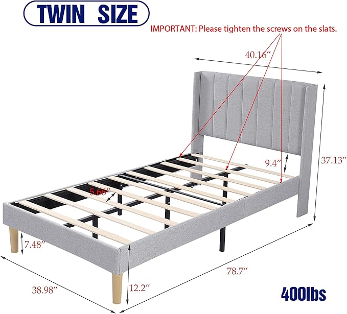 - Stylish Wingback Design: This upholstered twin size bed frame adopts clean line outline and high-density foam cushion headboard with wingback design, creating simple and modern appearance, adding texture and comfort to your home.