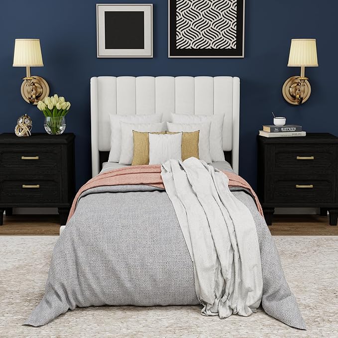 - Stylish Wingback Design: This upholstered twin size bed frame adopts clean line outline and high-density foam cushion headboard with wingback design, creating simple and modern appearance, adding texture and comfort to your home.
