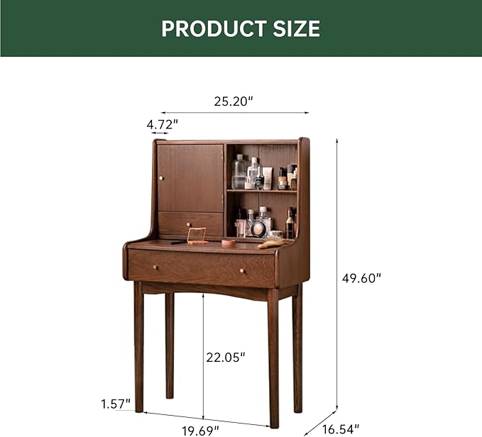 - đăExtra large storage spaceăMakeup vanity desk features two different sized drawers and three cabinets to organize a large number of different sized cosmetics, skincare.