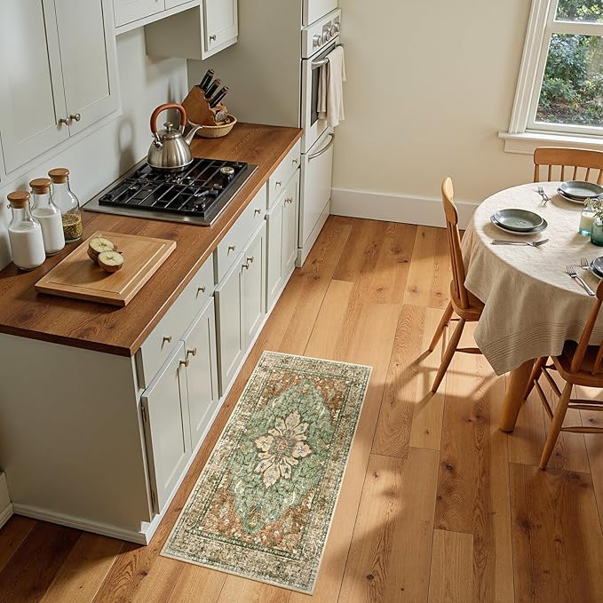 Area Rugs 2'x4' Washable Non-Slip, Floral Vintage Distress Print Pattern Medallion Carpet for Living Room Bedroom Dining Room, Brick Red Rust Neutral Brown Burnt Orange Green