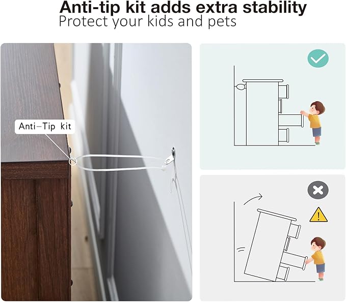 - Sturdy Wood Dresser with Anti-Tip Safety: This wood dresser is crafted from high-quality engineered wood and features a symmetrical chamfered base for enhanced stability. As a safe and reliable dresser for bedroom, it includes anti-tip straps that securely attach to the wall—perfect for families with kids or pets