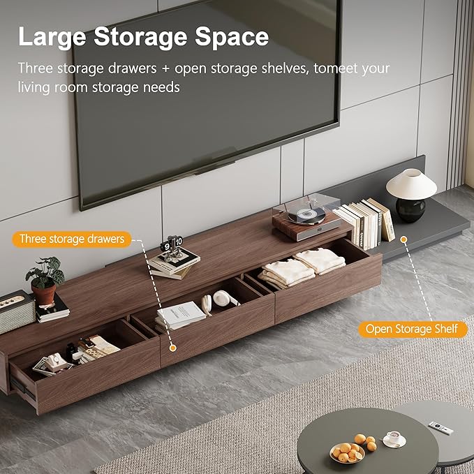 - 【 Flexible Adaptation 】 The length of this TV cabinet is adjustable, ranging from 79 inches to 130 inches, and it can be adapted to TVS of 70 to 130 inches to meet different space requirements