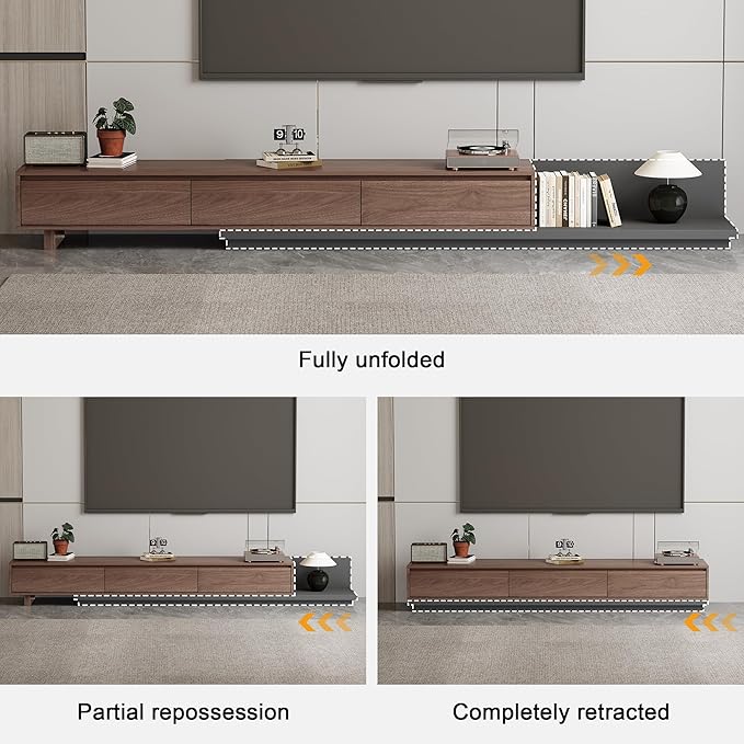 78.7–130" Extendable TV Stand with 3 Drawers - Mid-Century Modern Adjustable Entertainment Center, Perfect for Living Room, Walnut