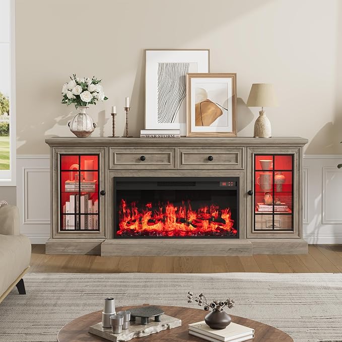 - Effortless to Assemble & Services—Please note that the fireplace TV stand will be delivered in 2 packages, which may arrive at different times. Additionally, we offer illustrated and step-by-step instructions for easy installation. if you encounter any issues, please don't hesitate to reaching out us. You satisfaction is our top priority!