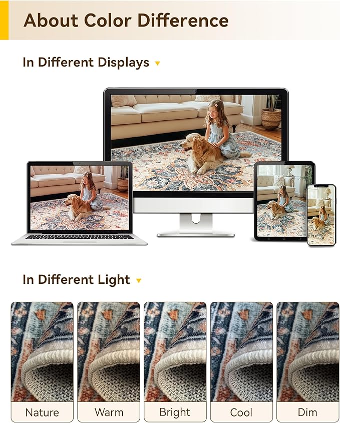 - About Crease: you may notice some folds on your rug upon receiving it. These are just from the way it was packaged during shipping. With regular use, the creases should naturally disappear within a few days. However, if you want to speed up the process, you can try folding the rug in the opposite direction or placing a heavy object on top of the creases to help flatten them out faster.