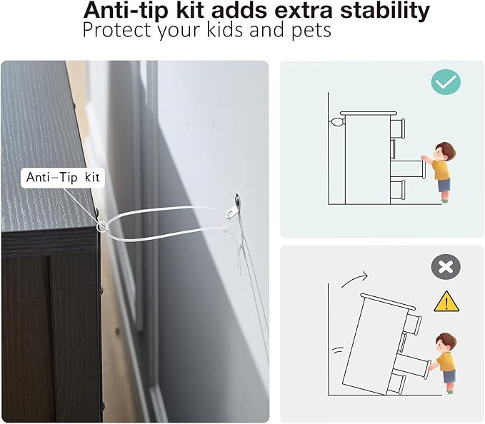 - Sturdy and Secure Build: This farmhouse dresser is built from high-quality engineered wood and features a symmetrical chamfered base for enhanced stability. For added safety, anti-tip straps are included so you can secure this tall dresser to the wall, protecting your family and ensuring peace of mind
