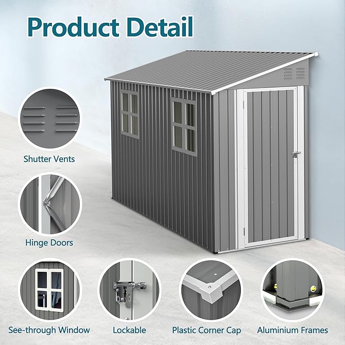 4x10 Ft Outdoor Metal Shed, Heavy-Duty Storage Shed with Floor Kit for Tools and Bikes, Lean to Shed with Left/Right Door and 2 Windows