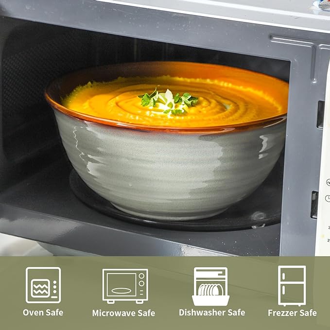 - Durable & Oven-Friendly Ceramic Construction:Crafted from sturdy, lead-free porcelain, these large bowls withstand high oven temperatures and daily dishwasher cleaning without fading, cracking, or wear