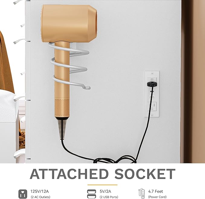 - Convenient Charging Station: Power up your routine with the vanity's built-in outlets, USB and Type-C ports, plus a holder for your hair dryer or styling tools; Everything stays charged, organized, and within reach