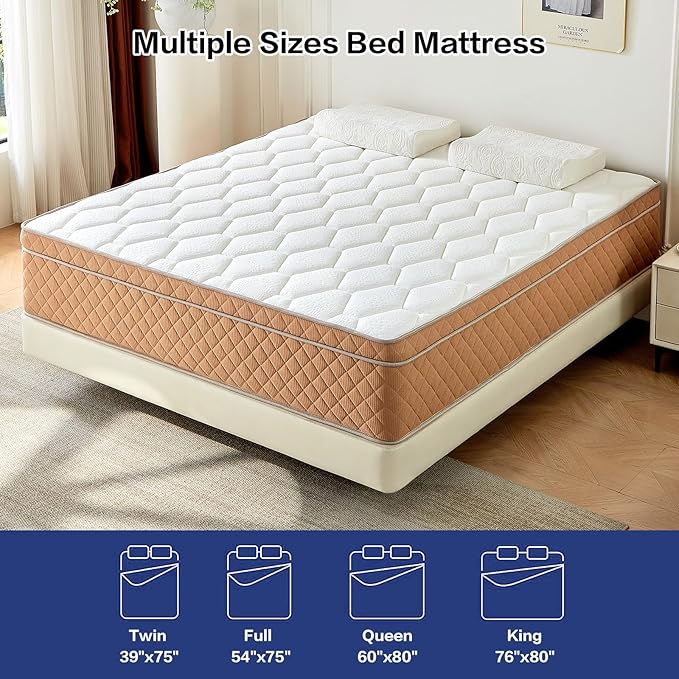 - 【Queen size Mattress Motion Isolation】Our queen mattress are equipped with hundreds of independent pocketed springs and rebound foam, which not only provide strong support, but also effectively absorb the noise and vibration generated by turning over in your sleep, blocking the impact of your partner's movement, ensuring the quality of your sleep, and allowing you to sleep peacefully all night long.