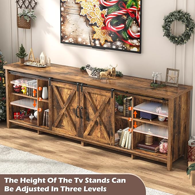 Farmhouse TV Stand for 90 Inch TV with Sliding Barn Door, Rustic Wood Entertainment Center Large Media Console Cabinet Long Television Stands,Console Table and Media Furniture for Living Room(Brown)