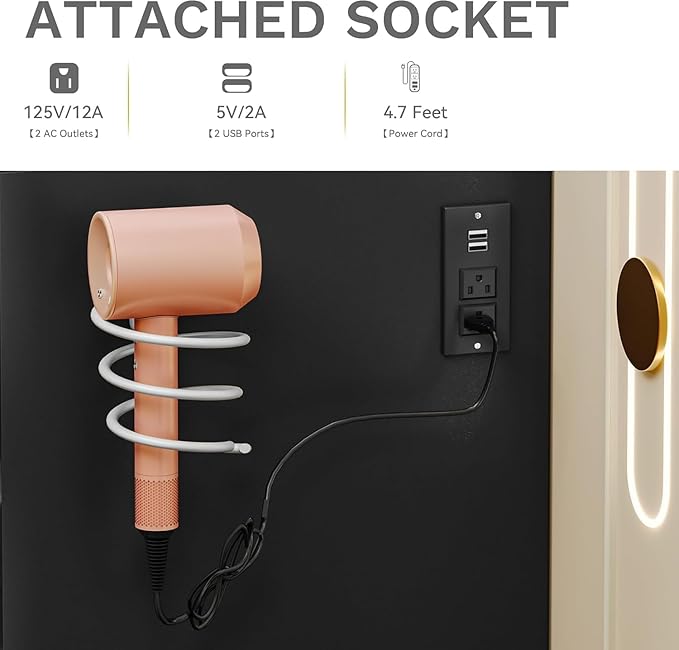 - Seamless Power Integration: Streamline your setup with a built-in power hub, including outlets for styling tools and USB ports for charging devices, keeping everything within reach