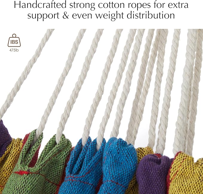 - đź’šPASSIONATE BRAZILIAN STYLE: Our vibrant color stripes brazilian hammocks are produced with organic colored cotton and recycled cotton - inputs that do not require water. Instant yard highlight, bursting with life