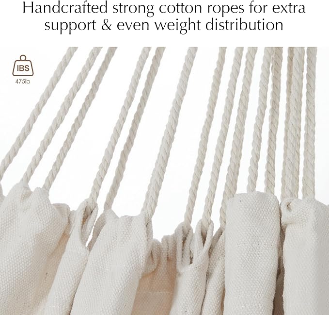 - đź’šPORTABLE OUTDOOR & INDOOR HAMMOCK: Whether you're sipping on a refreshing beverage or curled up with a good book. It is guaranteed to provide lots of relaxation. Our polycotton hammock is perfect for indoor or outdoor covered use and adds a relaxed feel and a luxurious look to your space. It can be used with a 9ft hammock stand or hung from a coconut tree