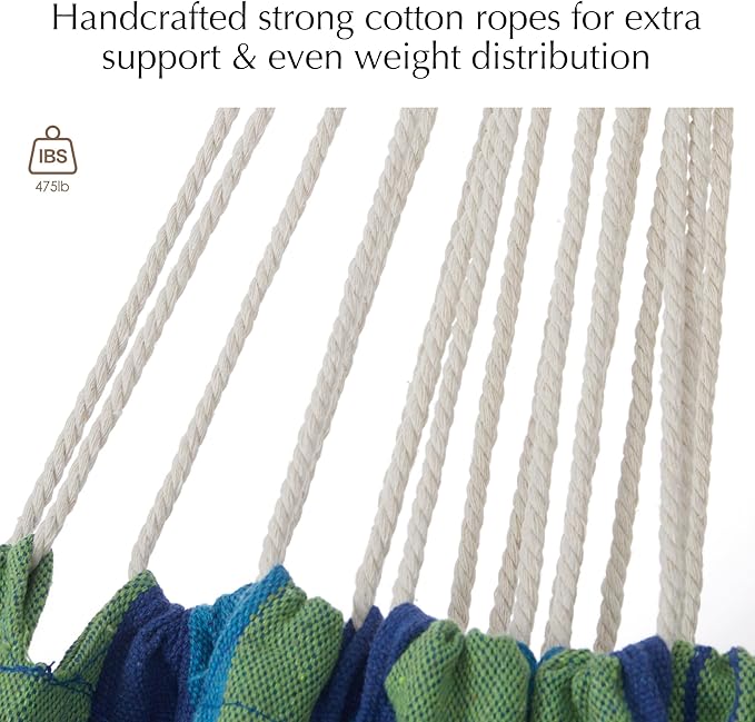 - đź’šPASSIONATE BRAZILIAN STYLE: Our vibrant color stripes brazilian hammocks are produced with organic colored cotton and recycled cotton - inputs that do not require water. Instant yard highlight, bursting with life