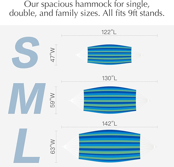 PNAEUT Double Hammocks for Outside, Replacement Outdoor Tree Hammock for Indoor Patio Porch Garden (Blue, Medium)