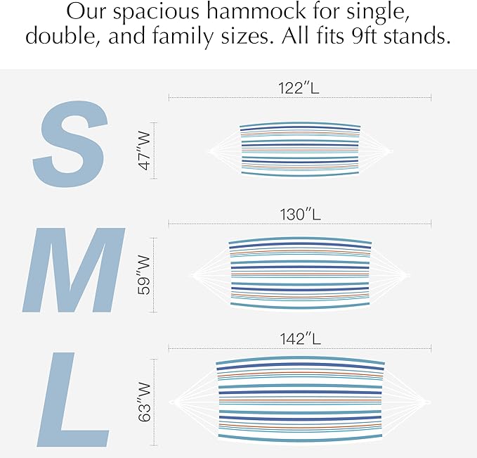 PNAEUT Double Hammocks for Outside, Replacement Outdoor Tree Hammock for Indoor Patio Porch Garden (Lightblue, Medium)