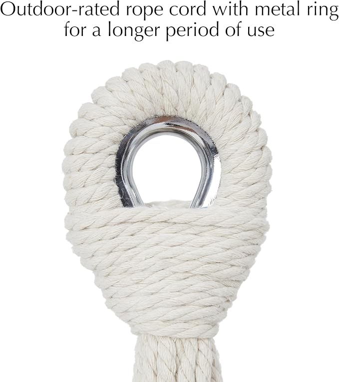 - đź’šOUTDOOR-RATED HAMMOCK EYES: Our thicker and tighter rope cord with metal ring for a longer period of use. 475-pound weight capacity easily accommodates up to two people at once
