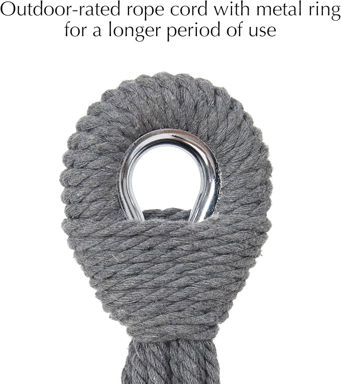 - đź’šOUTDOOR-RATED HAMMOCK EYES: Our thicker and tighter rope cord with metal ring for a longer period of use. 475-pound weight capacity easily accommodates up to two people at once
