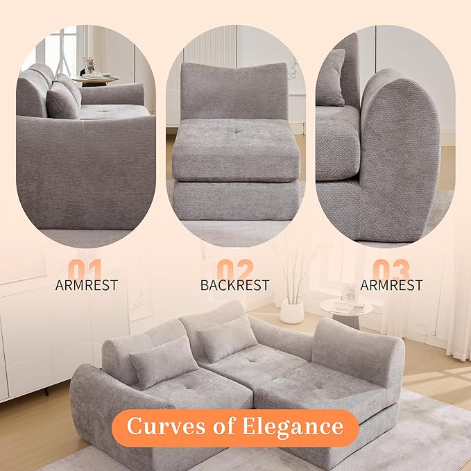 - ๐ ๐ผ๐ฑ๐๐น๐ฎ๐ฟ ๐ ๐ฎ๐ด๐ถ๐ฐ: Easily connect, reshape, and repeat. Say goodbye to bulky, rigid furniture. The innovative modular design allows you to easily snap together sections without tools. Create endless combinationsโL-shaped, chaise longue, spacious sectionalsโto perfectly fit your space and needs. The extra-strong, non-slip base ensures perfect alignment and secure fit, eliminating annoying shifting or gaps. Your sofa will evolve with your life.