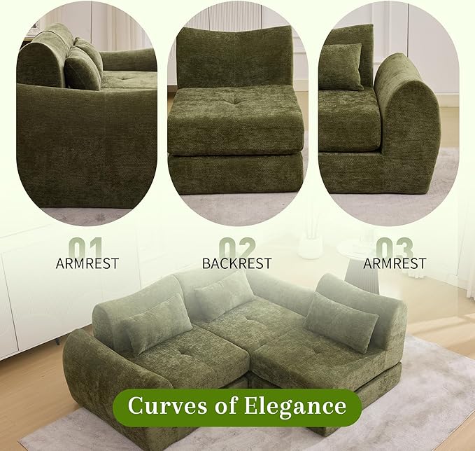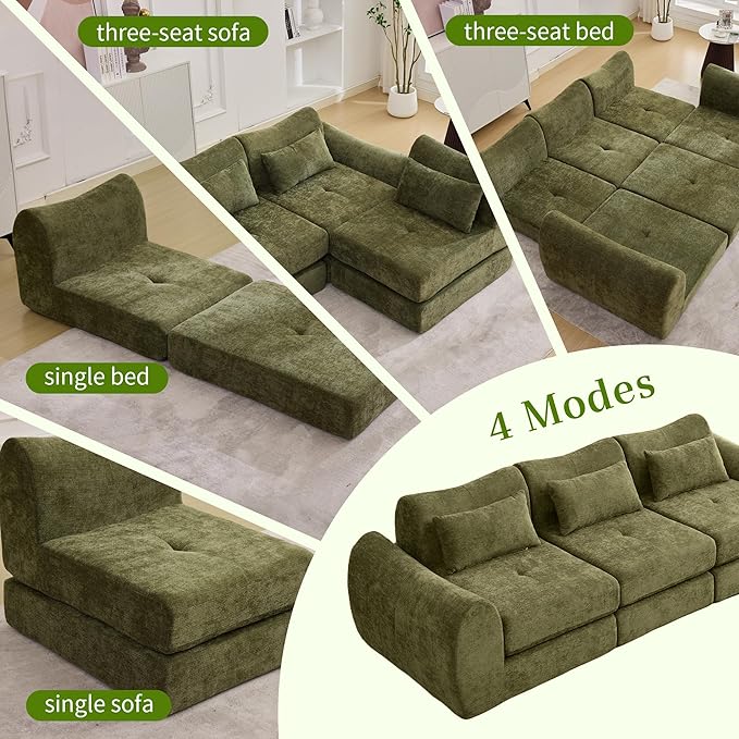 MAXMAXX 102" Modular Sectional Cloud Sofa,4-in-1 Folding Convertible Sofa Bed, Floor Boneless Couch, Modular Cushion Couch,Suitable for Living Room,Bedroom and Recreation Room (Green)