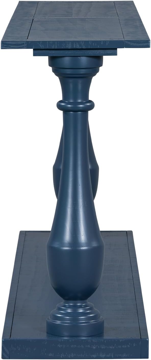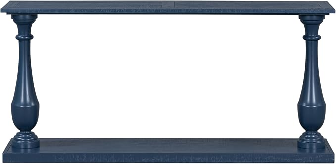 63 Inch Console Table with 2 Vase-Leg, Vintage Wood Grain Sofa Table Behind Couch, Narrow Entryway Accent Table for Living Room, Entrance, Hallway, Foyer, Bedroom, Apartments, Blue