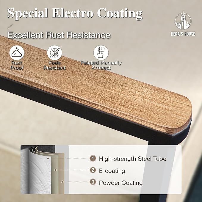 - 【Advanced E-Coating & Powder-Coating Technique】The HERA'S HOUSE metal frames of our patio dining sets are treated with high-performance E-coating and powder-coating techniques. This ensures extended protection against rust, scratches, rain, and UV damage. Enjoy all-weather resistance, easy cleaning, and no special upkeep needed.
