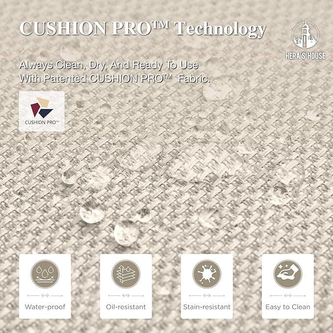 - 【All-Season Durability】Our special CUSHION PRO technology is applied to the fabric of this table and chair set, allowing dirt to be easily wiped away. The cushions are waterproof, oil-proof, and feature an L-shaped zipper design for easy removal, making them perfect for any season.
