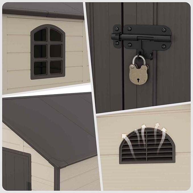 - Durable All-Weather Construction - Maintenance-free shed with UV protection, waterproof design, and hot-dipped galvanized steel reinforcement for year-round outdoor use.