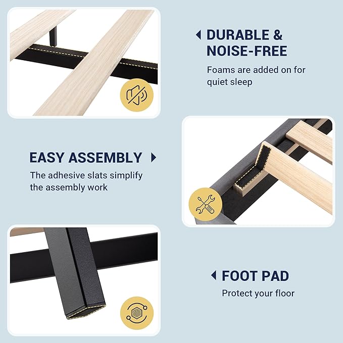 - Sturdy and Durable: Featuring a heavy-duty steel frame, reinforced legs, and supportive wooden slats, this bed provides stable 800-lb support
