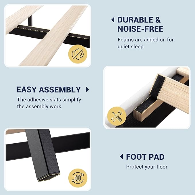 - Sturdy and Durable: Featuring a heavy-duty steel frame, reinforced legs, and supportive wooden slats, this bed provides stable 800-lb support