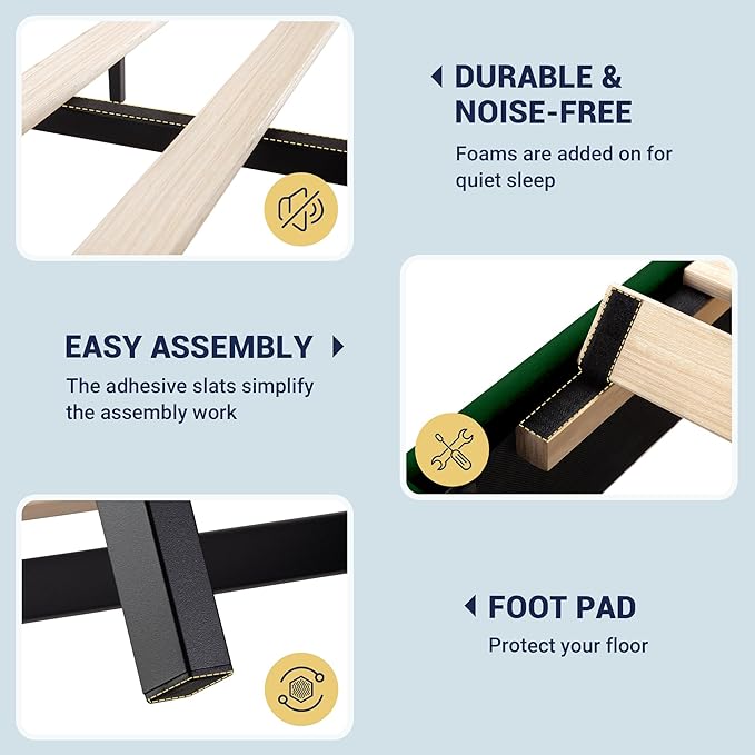 - Sturdy and Durable: Featuring a heavy-duty steel frame, reinforced legs, and supportive wooden slats, this bed provides stable 800-lb support