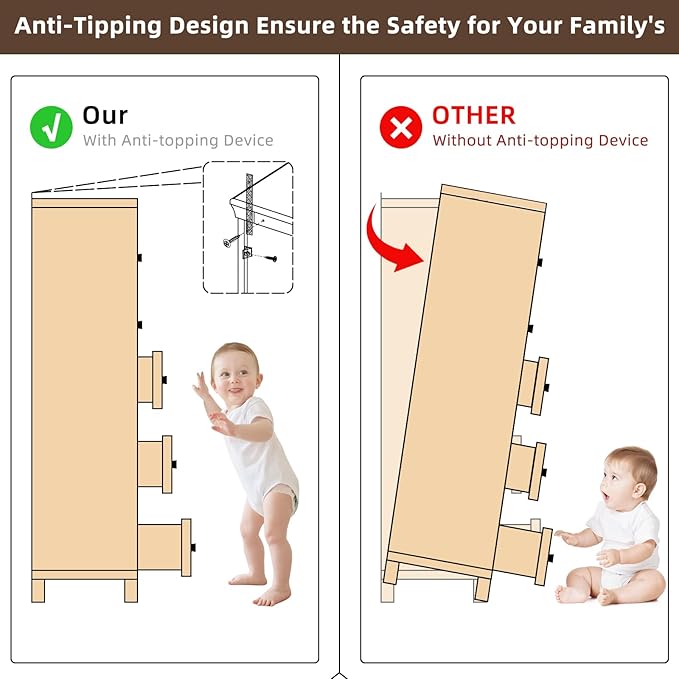 - 【Easy Assembly & Protective Packaging】: Enjoy a smooth setup process with the help of a detailed, illustrated manual. This modern brown dresser is also packaged with reinforced materials to reduce the risk of damage during delivery, making it a safe and smart bureau for bedroom organization.