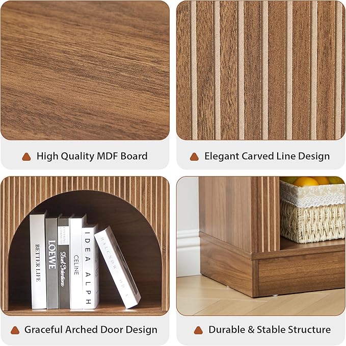 - 【Fluted Panel Texture】Crafted with vertically grooved panels and finished with a wood grain melamine veneer, the table blends refined texture with farmhouse warmth.
